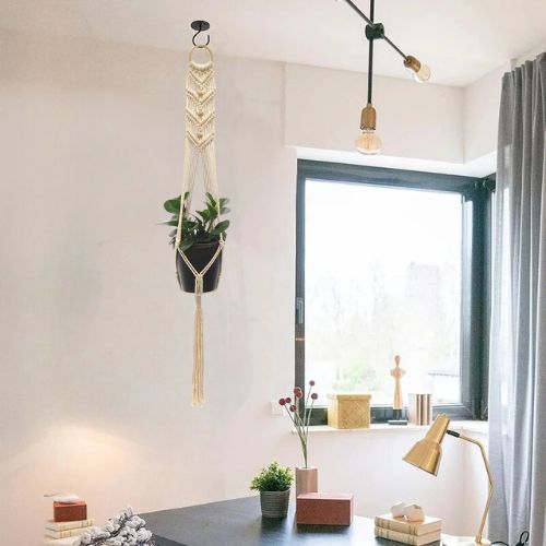 Notre suspension pour plantes tissée à la main en coton naturel allie élégance et fonctionnalité, transformant instantanément votre intérieur ou extérieur en un havre de verdure suspendu.